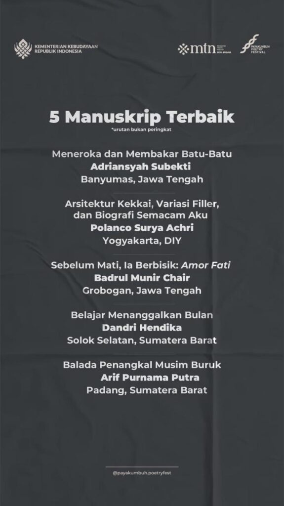 JAKARTA – Pemenang Sayembara Manuskrip Puisi Payakumbuh Poetry Festival (PPF) 2025, mengikuti kelas mentoring yang penyelenggaraannya berkolaborasi dengan Manajemen Talenta Nasional